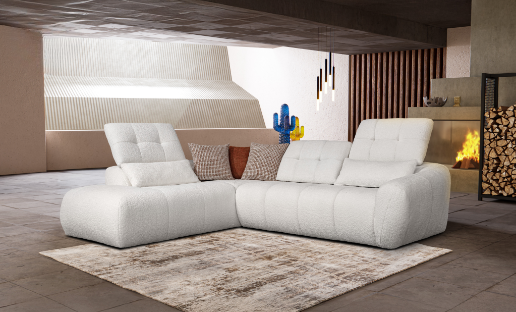 Le canapé d’angle gauche ORSO mise sur des lignes sobres et modernes, avec des assises spacieuses et un confort accueillant. Ses coussins relevables offrent un appui-tête appréciable, tandis que ses légères surpiqûres verticales soulignent son élégance. Pensé pour le quotidien, il propose un bel équilibre entre confort et maintien.