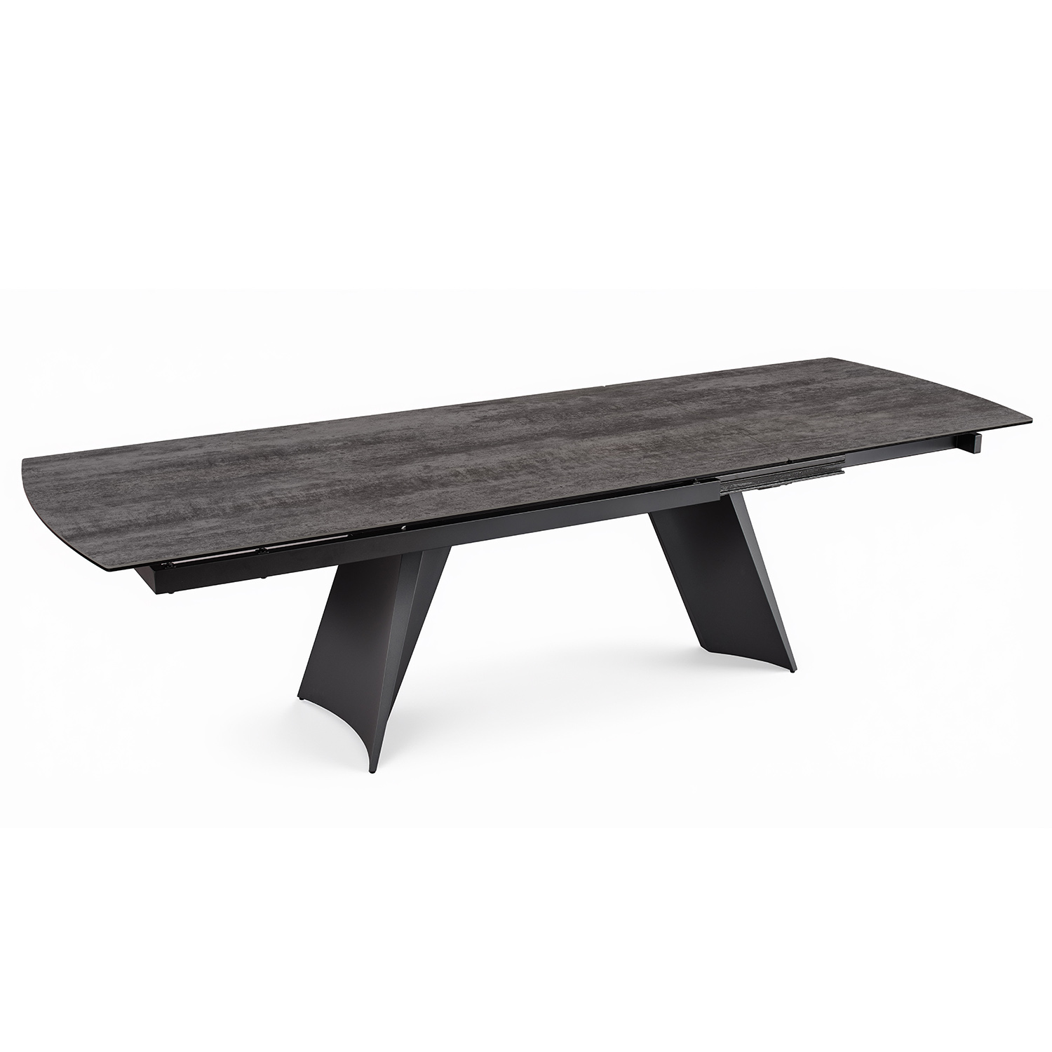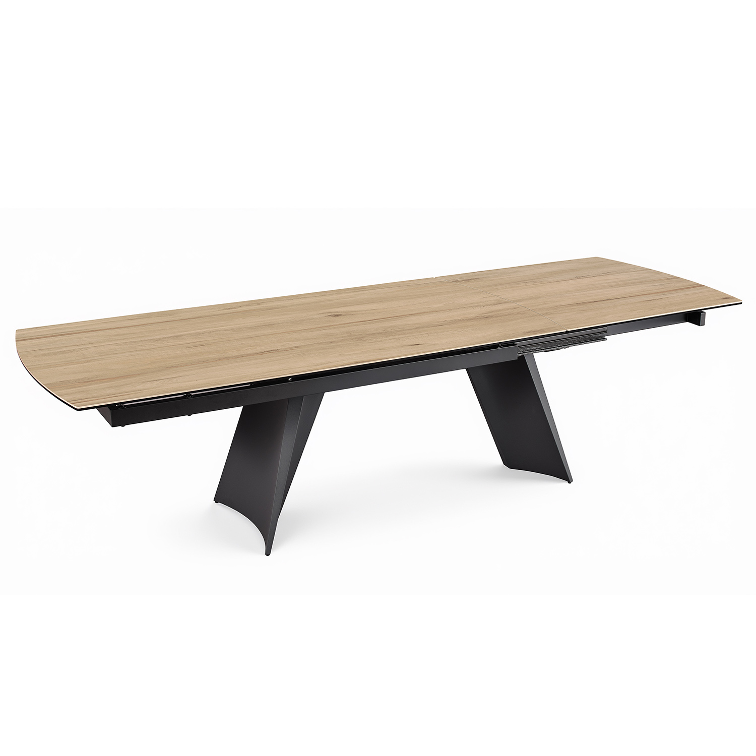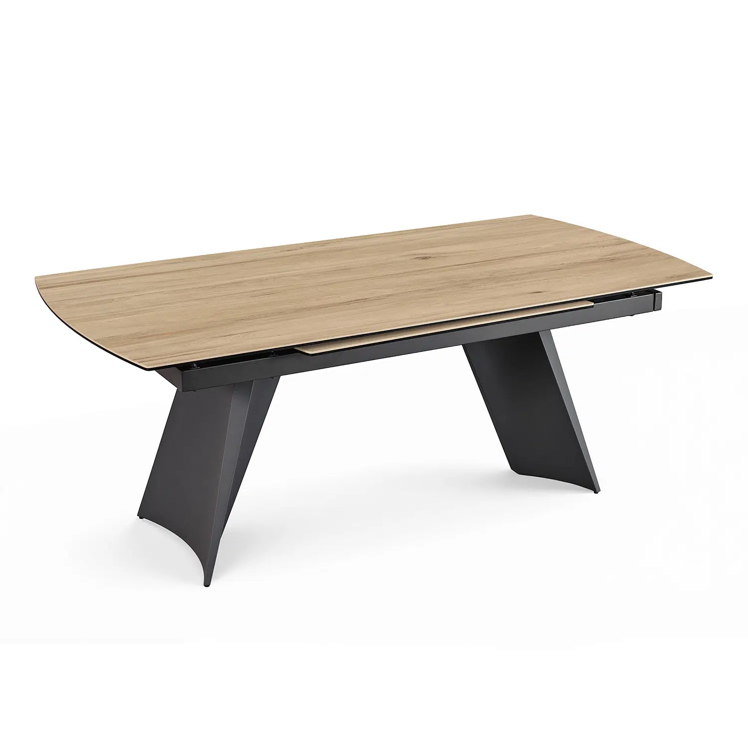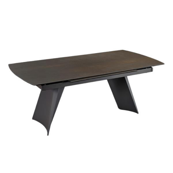 La table ELLIS séduit par ses lignes contemporaines et son allure graphique. Son plateau en céramique et son piètement trapèze courbé lui apportent beaucoup de caractère, tandis que son allonge rotative lui permet de s’adapter facilement à vos repas du quotidien comme aux grandes occasions.