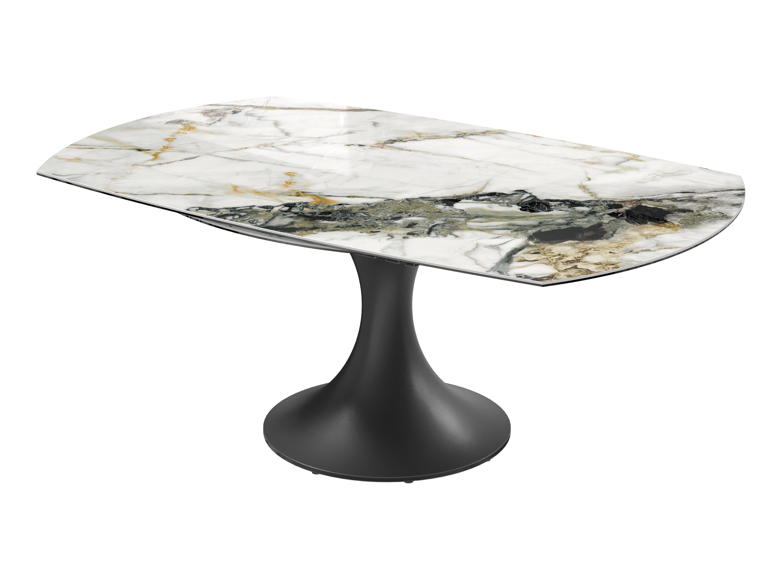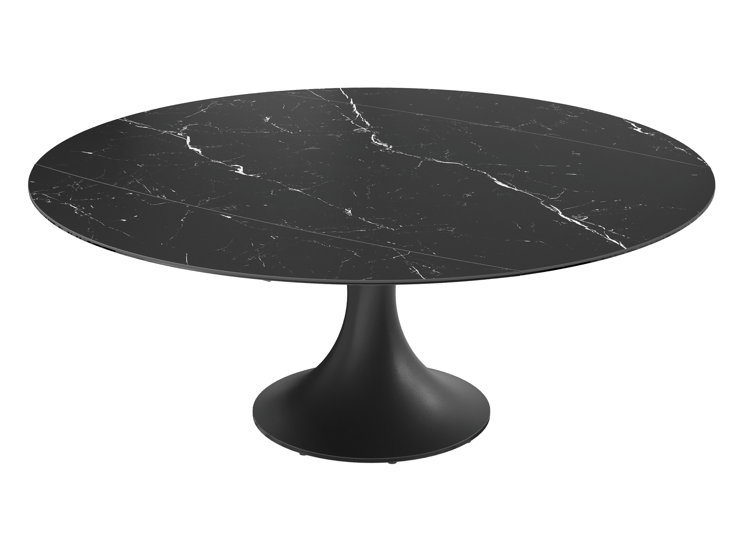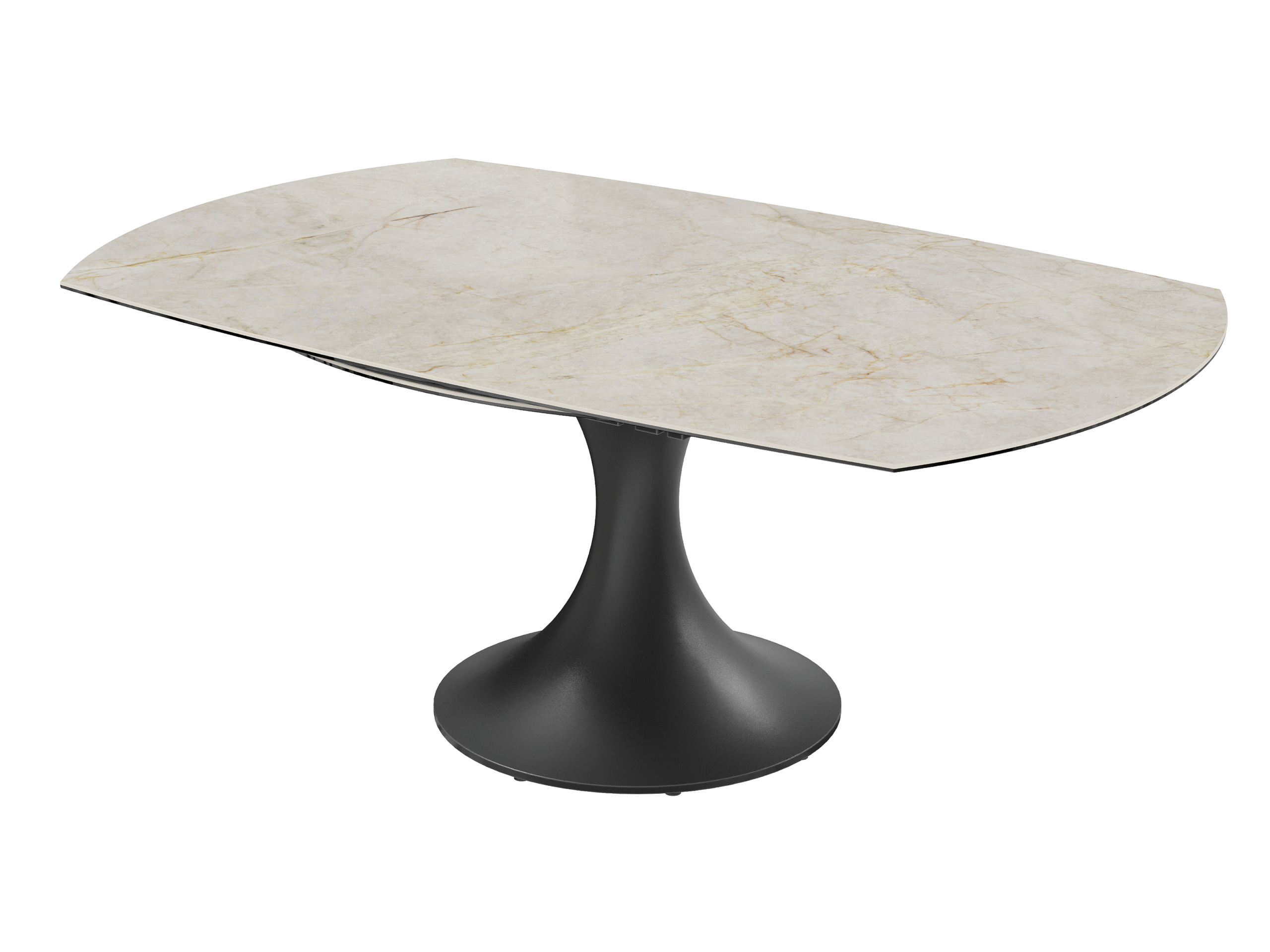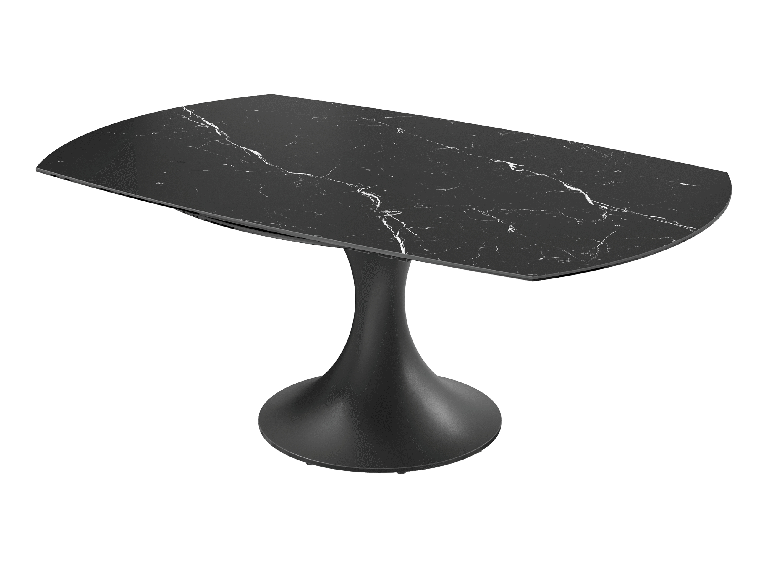 La table EMILIA séduit par son design contemporain et ses lignes élégantes. Son plateau en céramique et son piètement tulipe en acier laqué noir mat lui apportent une allure raffinée, tandis que ses 2 allonges rétractables synchronisées lui permettent de s’adapter facilement à vos repas du quotidien comme aux grandes occasions.
