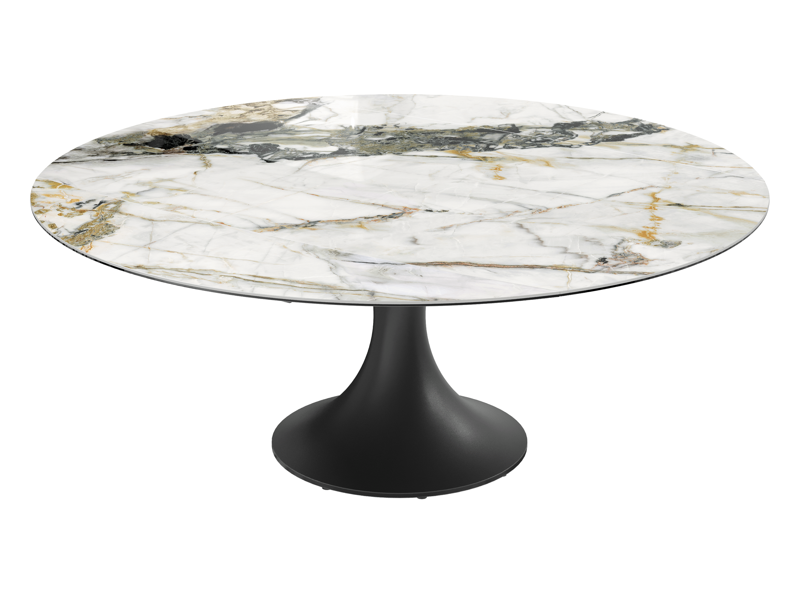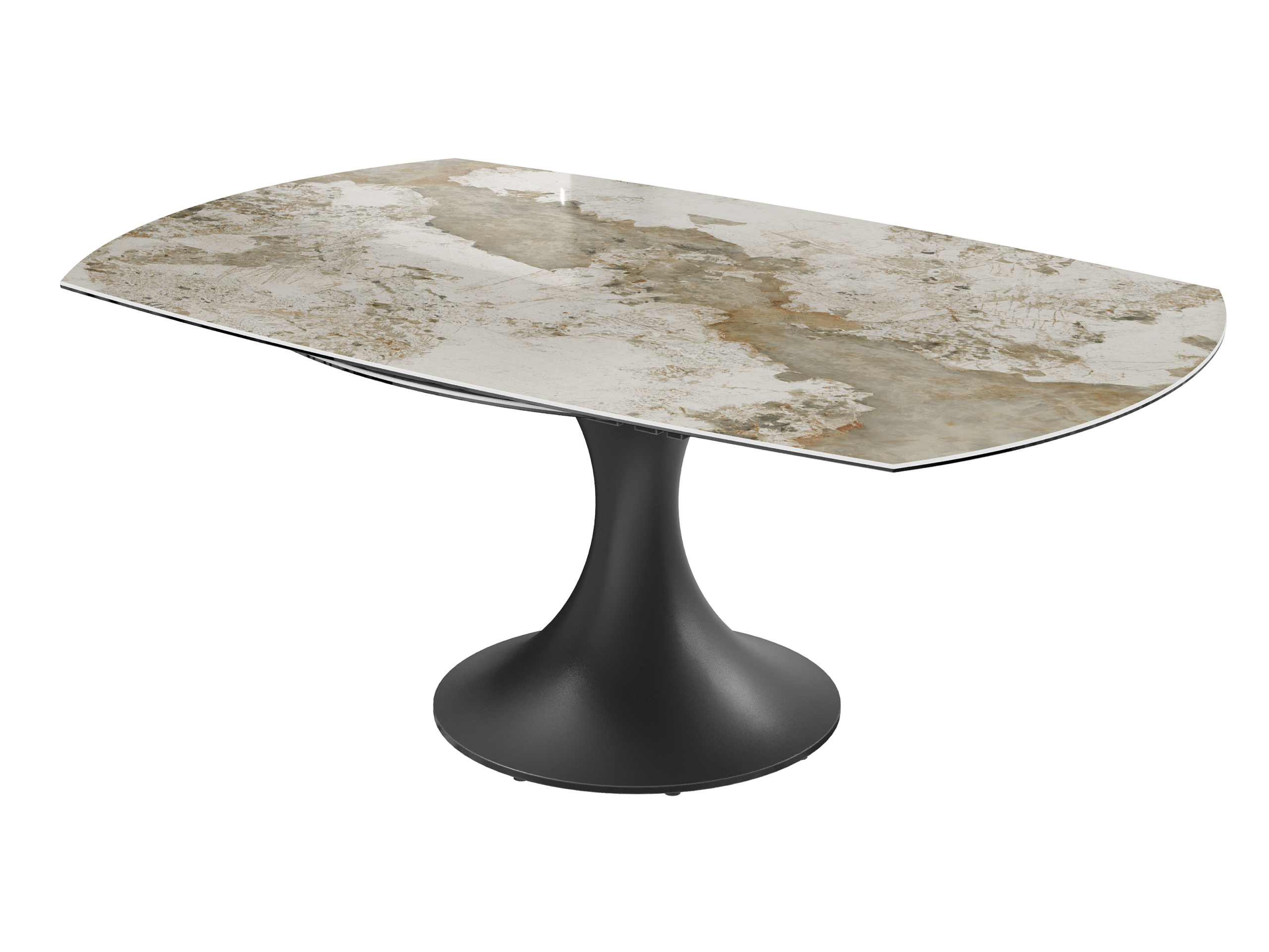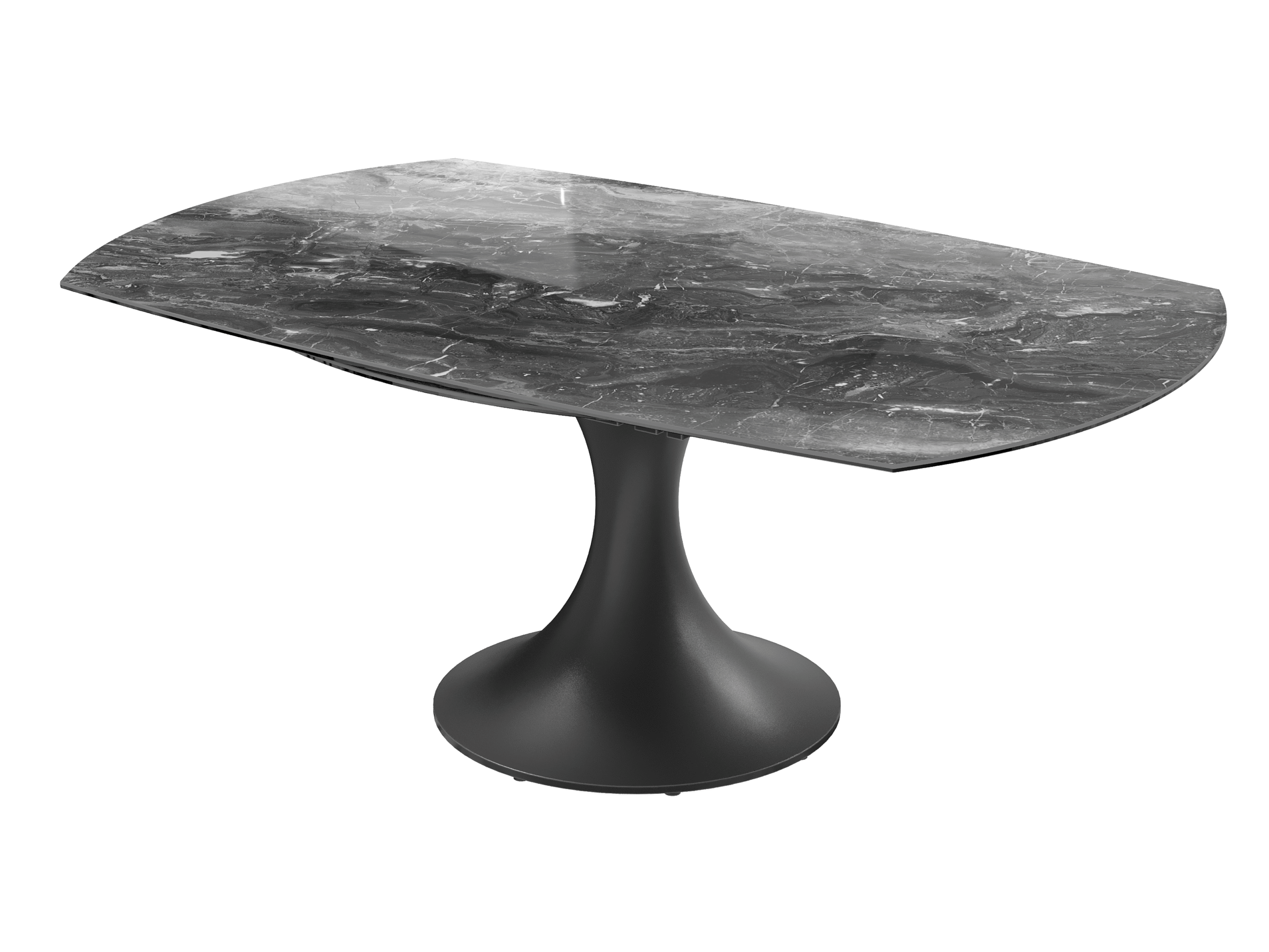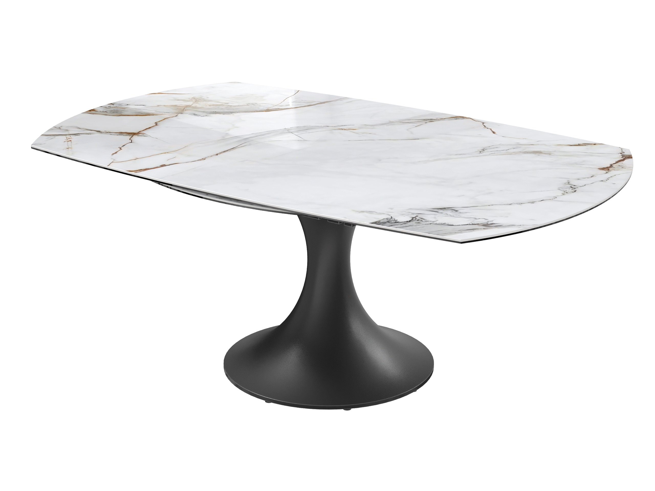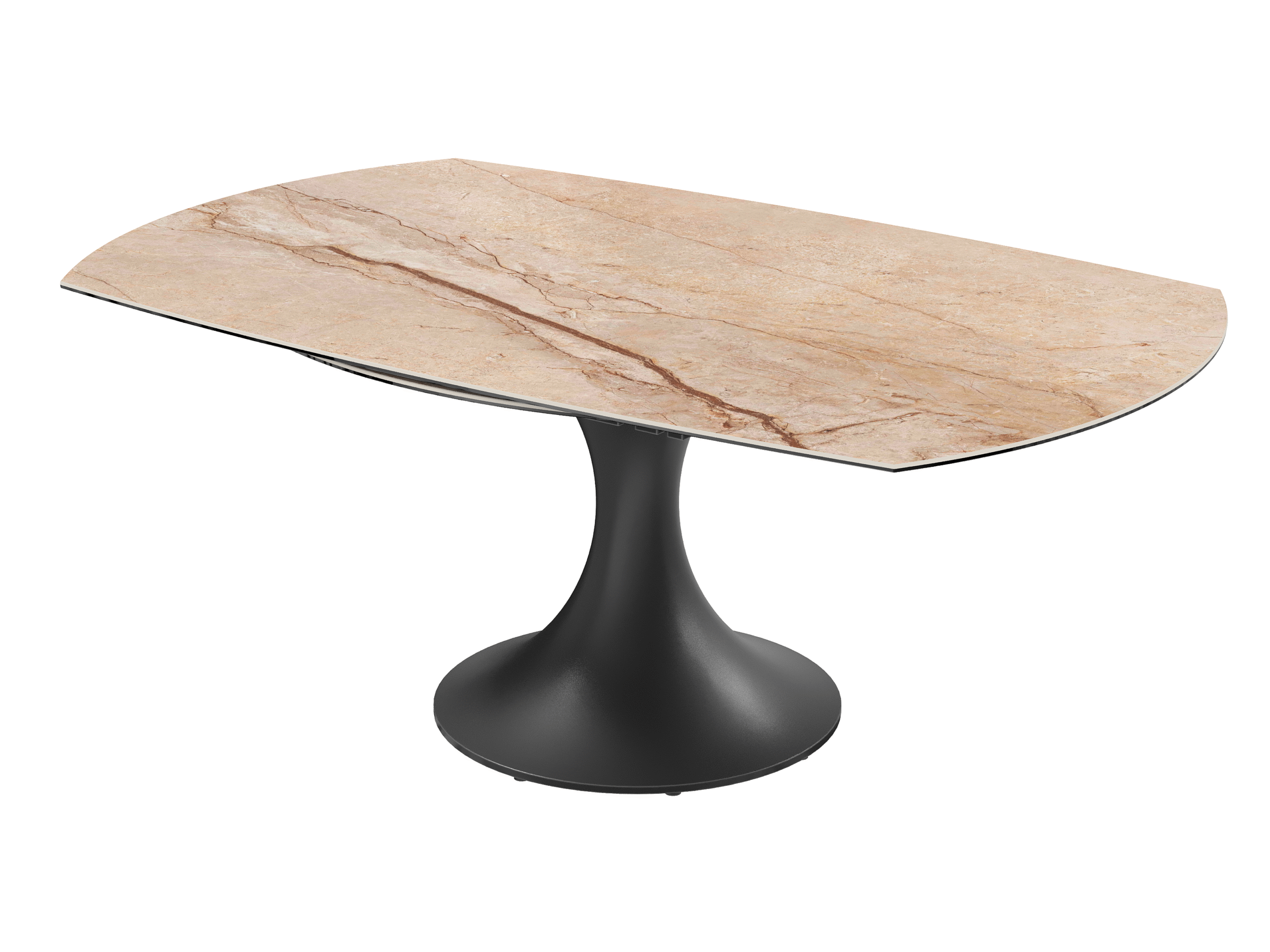 La table EMILIA séduit par son design contemporain et ses lignes élégantes. Son plateau en céramique et son piètement tulipe en acier laqué noir mat lui apportent une allure raffinée, tandis que ses 2 allonges rétractables synchronisées lui permettent de s’adapter facilement à vos repas du quotidien comme aux grandes occasions.