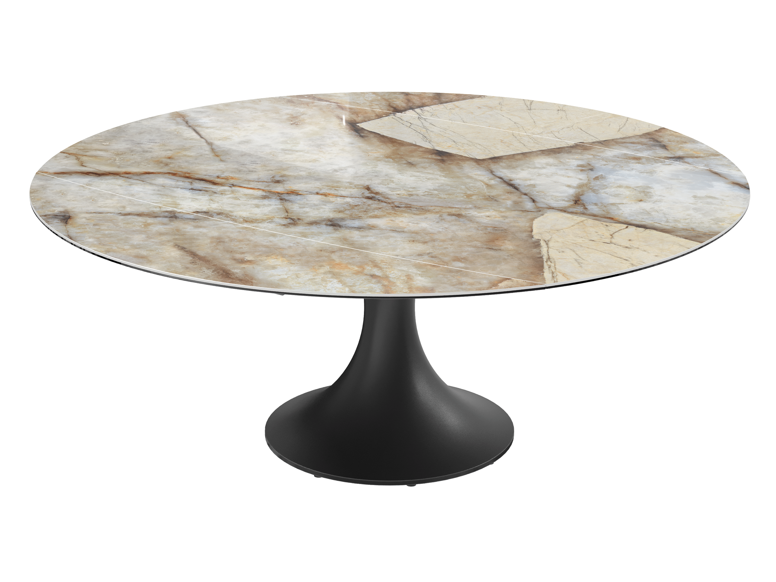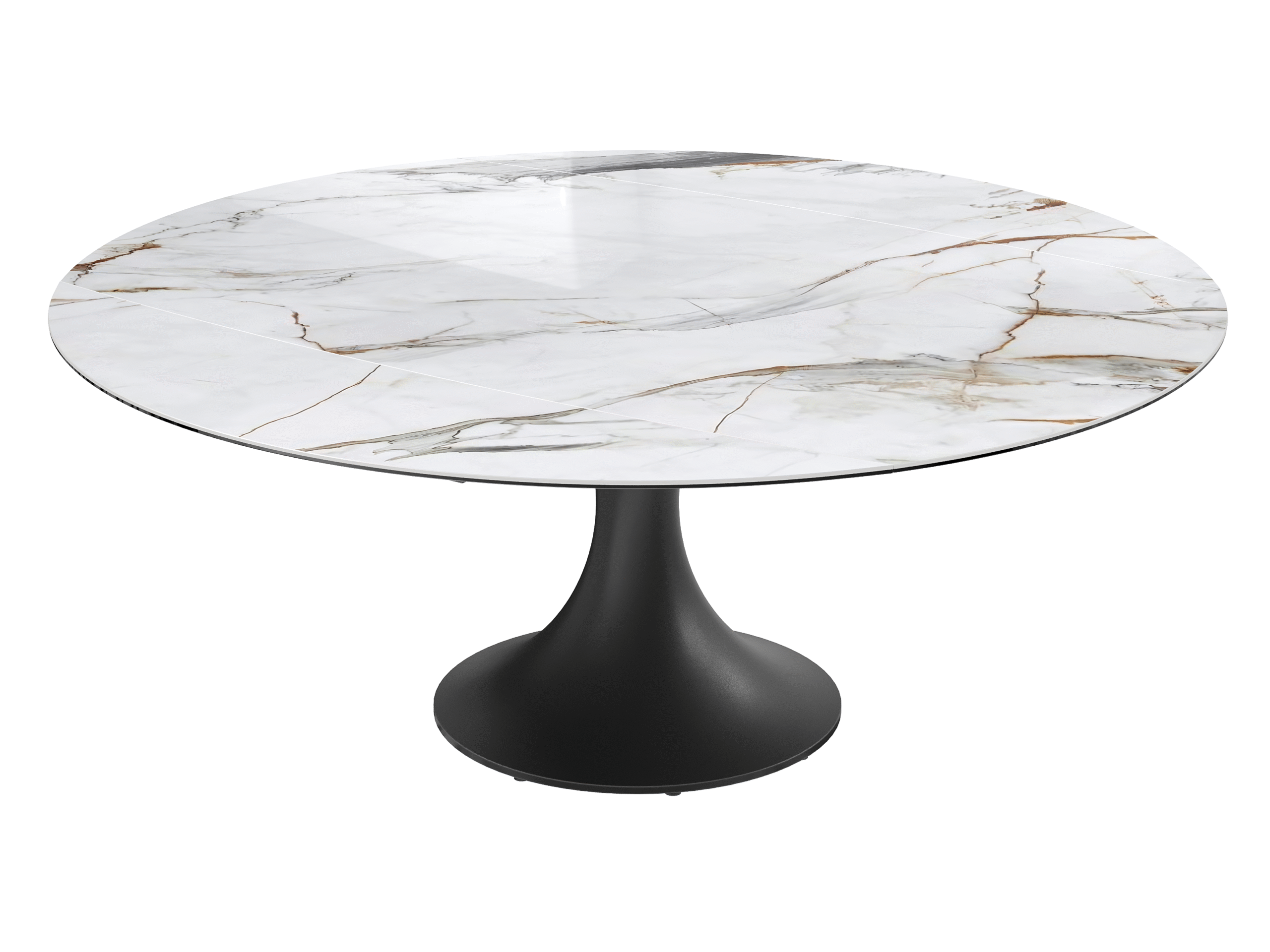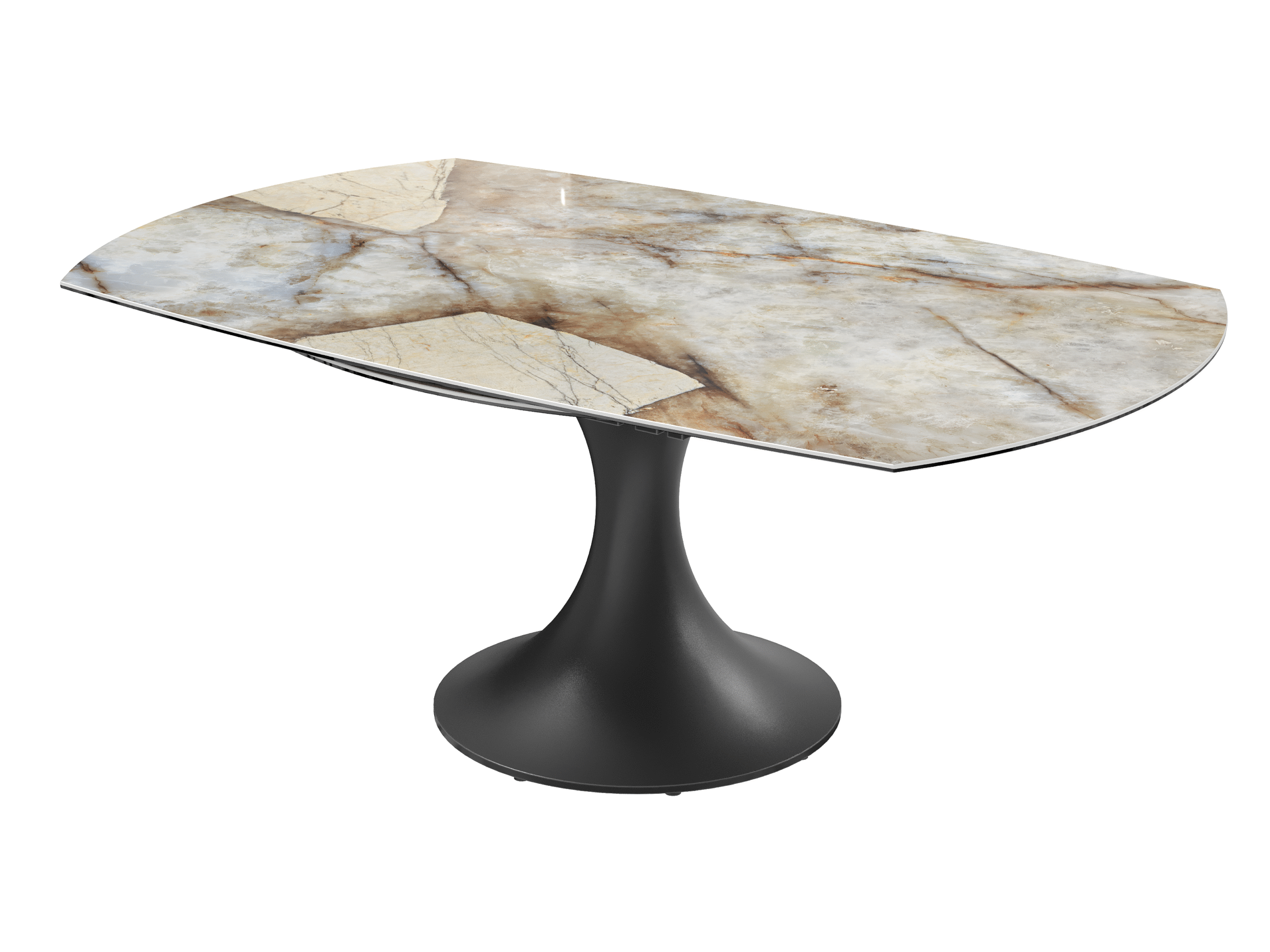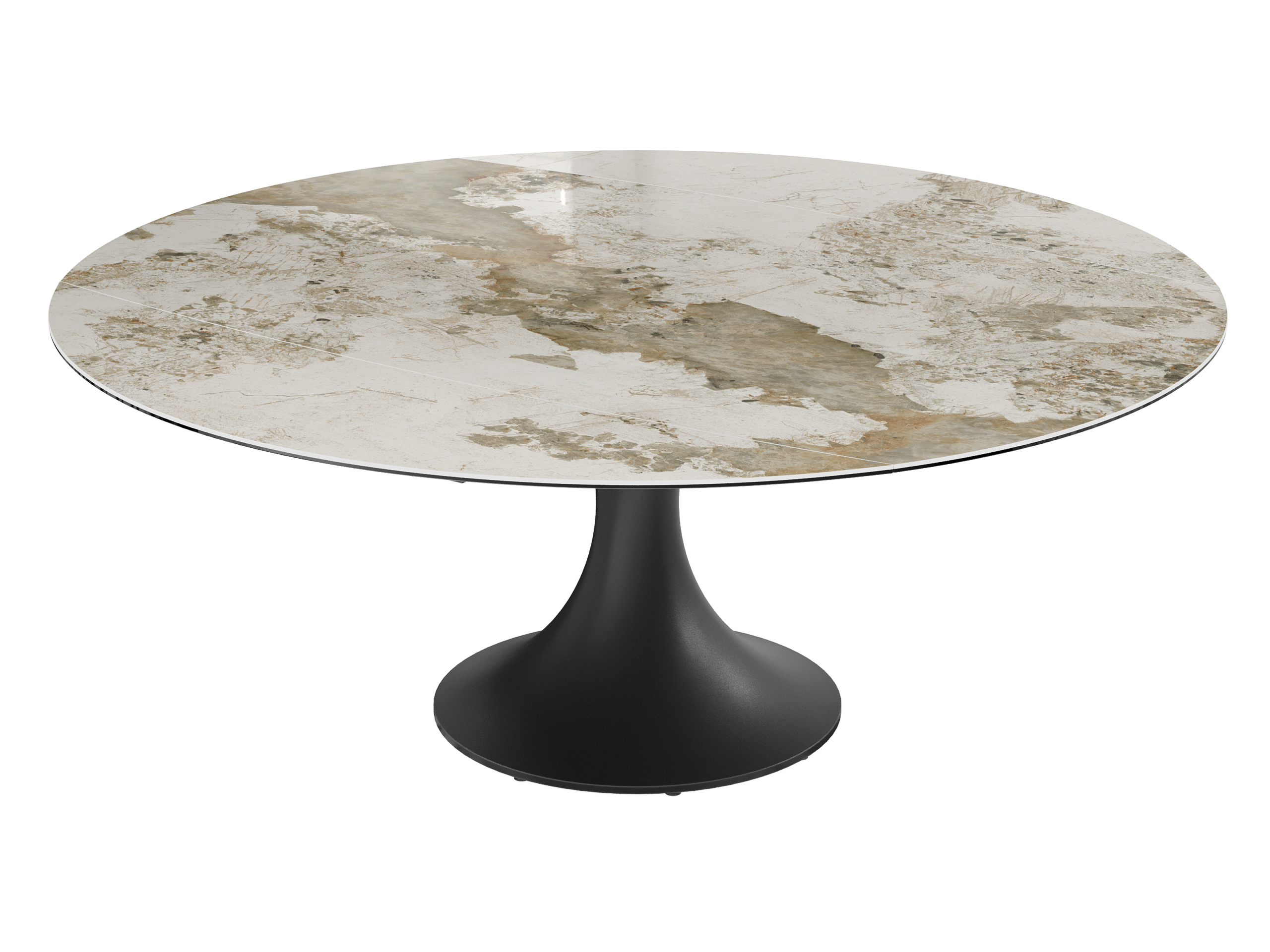 La table EMILIA séduit par son design contemporain et ses lignes élégantes. Son plateau en céramique et son piètement tulipe en acier laqué noir mat lui apportent une allure raffinée, tandis que ses 2 allonges rétractables synchronisées lui permettent de s’adapter facilement à vos repas du quotidien comme aux grandes occasions.