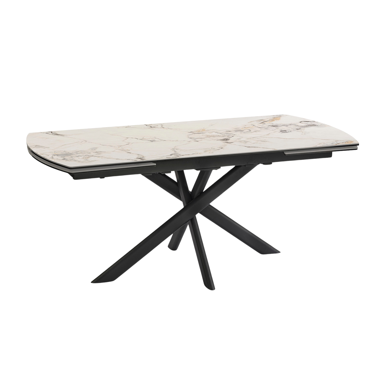 La table LYRA séduit par ses lignes contemporaines et son allure élégante. Son plateau en céramique et son piètement graphique en fer finition époxy gris anthracite lui donnent beaucoup de caractère, tandis que ses 2 allonges en bout escamotables lui permettent de s’adapter facilement à vos repas du quotidien comme aux grandes occasions.
